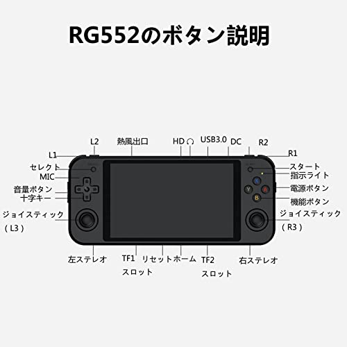【ファームウェアのアップグレード】RG552にはファームウェアのアップグレードがされており、スクリーンが5.36インチのOCA全貼りIPSスクリーンを採用して、1920*1152 P解像度、10点タッチパネル。ゲームレバーはダブル3Dジョイスティックです。ダブル L/Rキーもあって、各種のボタンは人体工学に適合し、長時間使っても指が疲れなく、ゲーム中に反応が良い。またデュアルステレオスピーカーやデュアルモーターを加えて、お客様たちにより良い使用体験をもたらす。