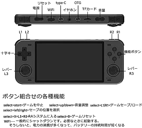 · RGB10MAXにはスクリーンが5インチのOCA全貼りIPSスクリーンを使用しています。長時間ゲームをしても、本体の安定性を保つことができます。解像度は854*480までアップグレードされました。依然としてダブル3Dジョイスティックの採用で、PS1類の振動ゲームが楽しめます。なお、ゲーム機ボタンの各種機能やボタン組合せ機能等、商品写真にご参考まで。